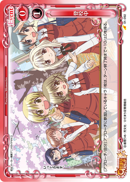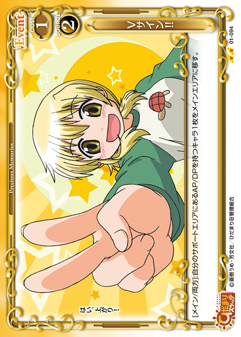 | [メイン/両方]:自分の全ての『ひだまりスケッチ』のキャラは、ターン終了時まで+10/±0を得る。 | ||