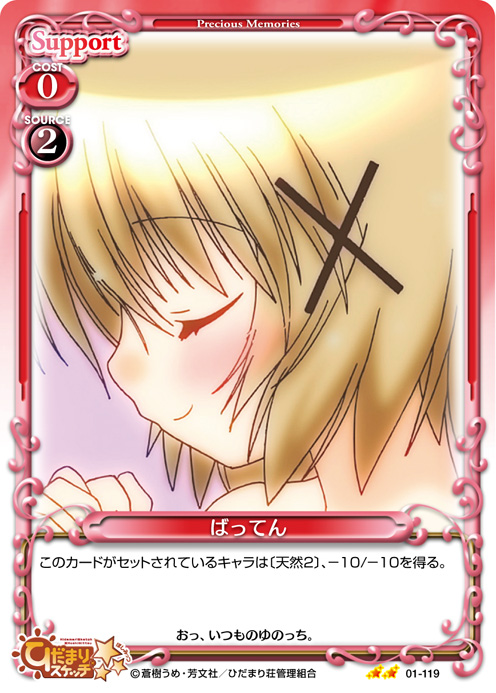 | このカードがセットされているキャラは〔天然2〕、-10/-10を得る。 | ||