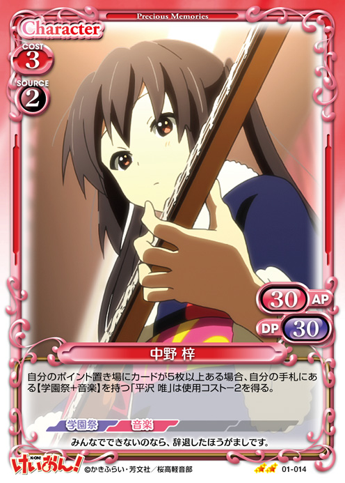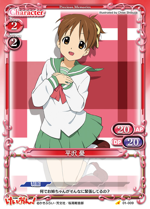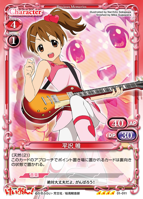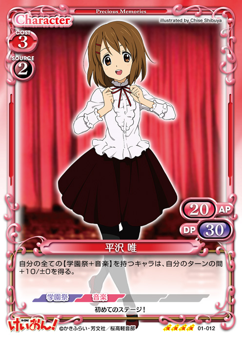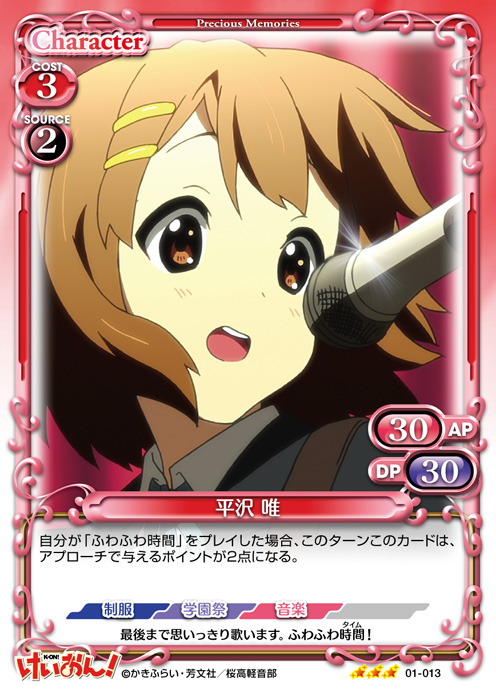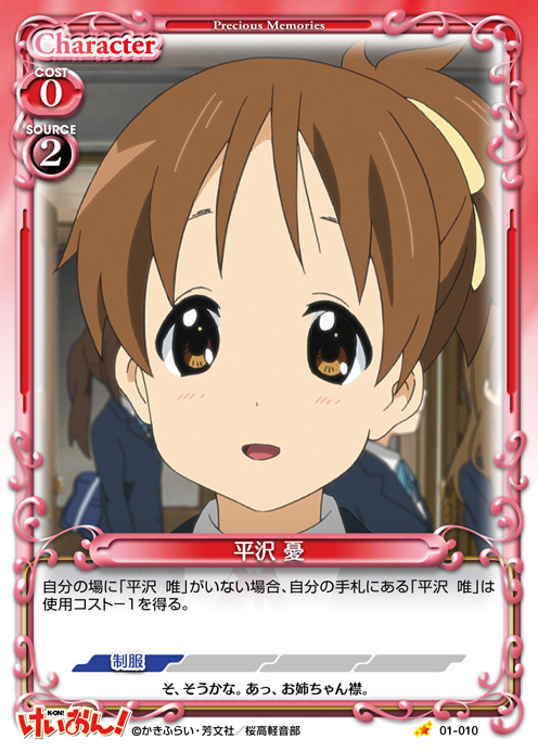 | 自分の場に「平沢 唯」がいない場合、自分の手札にある「平沢 唯」は使用コスト-1を得る。 | ||