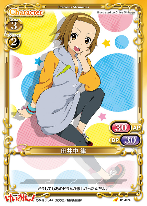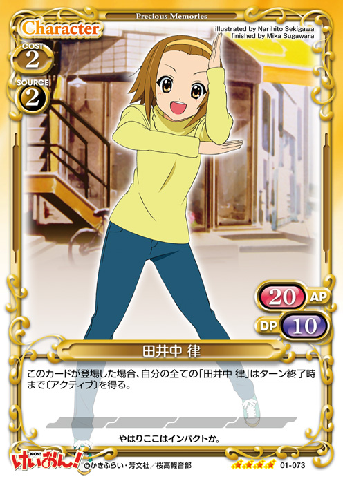 | このカードが登場した場合、自分の全ての「田井中 律」は、ターン終了時まで〔アクティブ〕を得る。 | ||