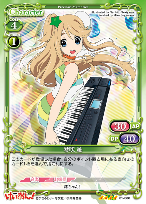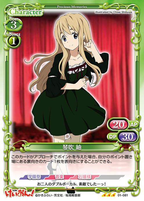 | 自分が「ふわふわ時間」をプレイした場合、ターン終了時に自分の【学園祭+音楽】を持つキャラ1枚は、活動状態になる。 | ||