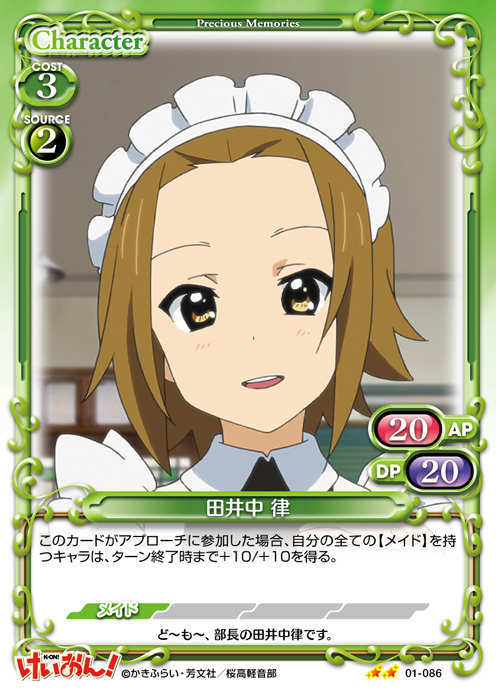 | このカードがアプローチに参加した場合、自分の全ての【メイド】を持つキャラは、ターン終了時まで、+10/+10を得る。 | ||