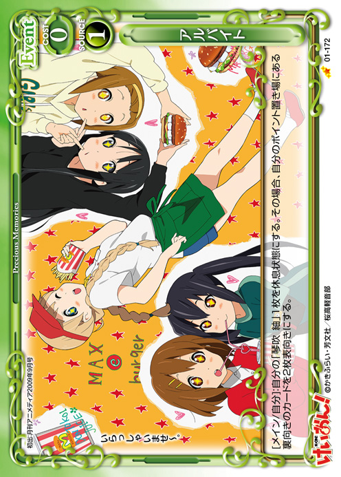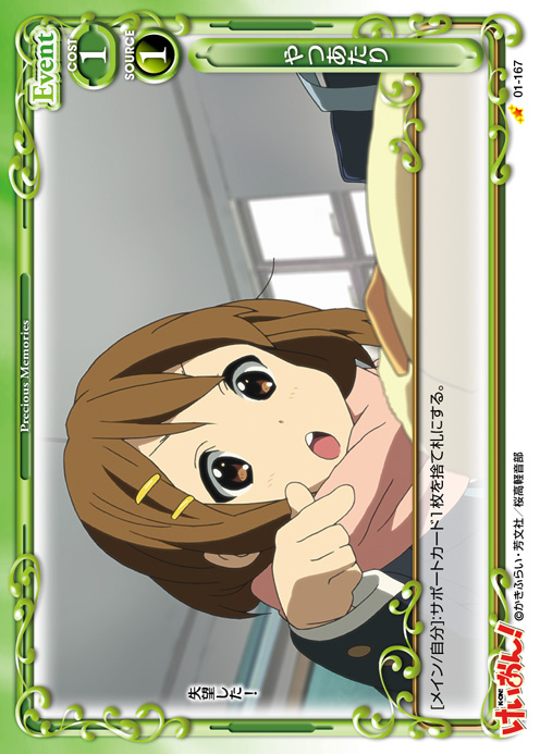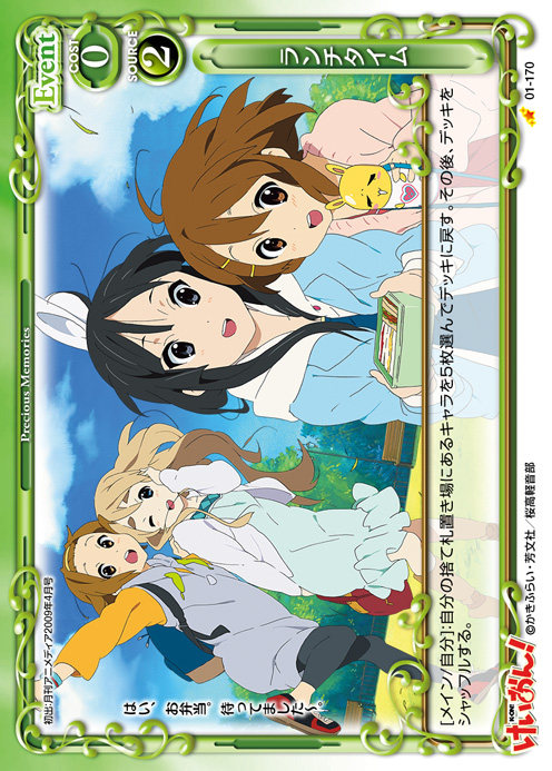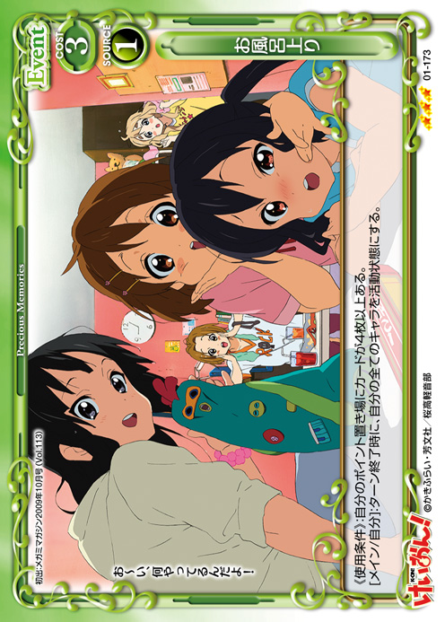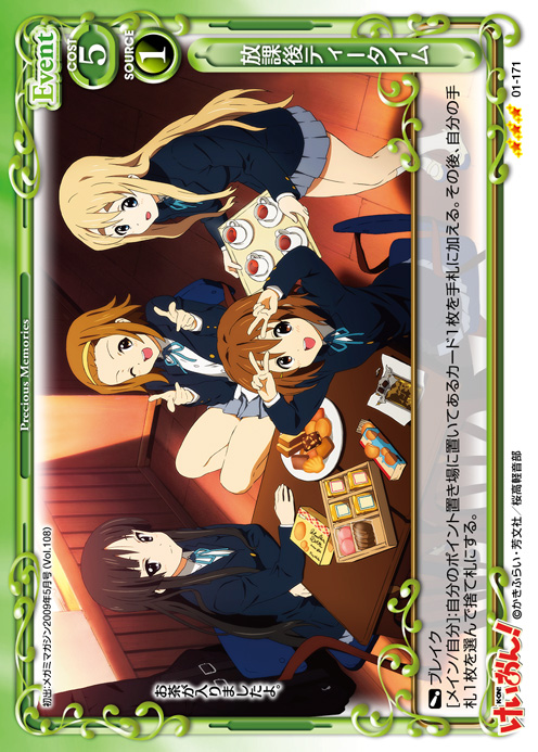 | [メイン/自分]:自分の「琴吹 紬」1枚を休息状態にする。その場合、自分のポイント置き場にある裏向きのカード2枚を表向きにする。 | ||