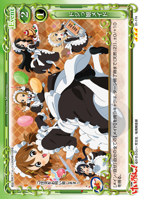 | [メイン/自分]:自分の全ての【メイド】を持つキャラは、ターン終了時まで〔天然(2)〕、±0/+10を得る。 | ||