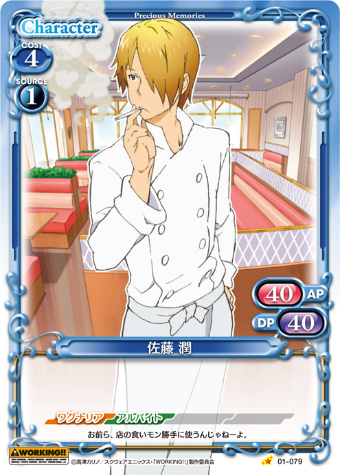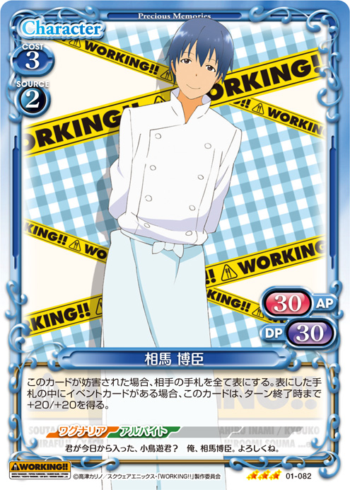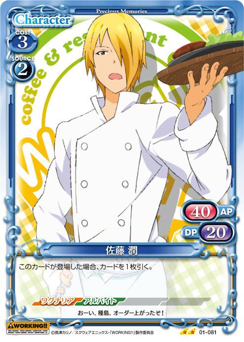 | このカードは、自分のメインフェイズ以外でも登場させることができる。このカードが登場した場合、自分のキャラ1枚は、ターン終了時まで使用コスト+2を得る。 | ||