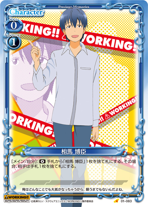 | [メイン/自分]:《0》手札から「相馬 博臣」1枚を捨て札にする。その場合、相手は手札1枚を捨て札にする。 | ||