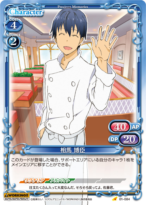 | このカードが登場した場合、サポートエリアにいる自分のキャラ1枚をメインエリアに移すことができる。 | ||