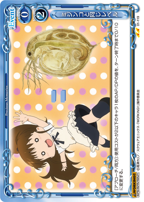 | [アプローチ/両方]:使用コストが2以下のキャラ1枚のAP/DPの値を、ターン終了時まで0/10に変更する。 | ||