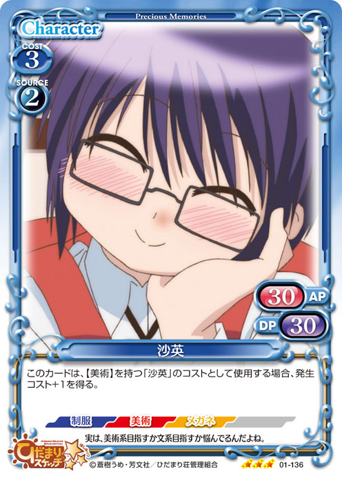 | このカードは、【美術】を持つ「沙英」のコストとして使用する場合、発生コスト+1を得る。 | ||