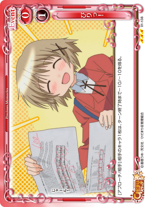 | このカードがアプローチに参加した場合、このカード以外の自分のキャラ1枚を活動状態にすることができる。 | ||