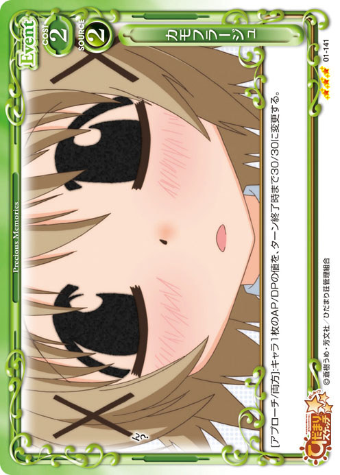 | [アプローチ/両方]:キャラ1枚のAP/DPの値を、ターン終了時まで30/30に変更する。 | ||