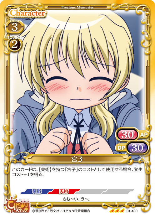 | このカードは、【美術】を持つ「宮子」のコストとして使用する場合、発生コスト+1を得る。 | ||