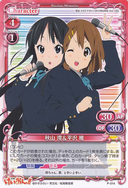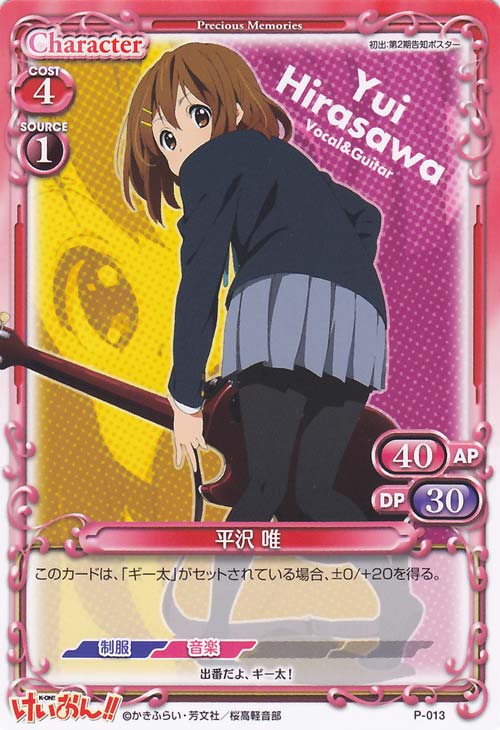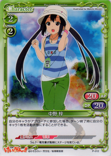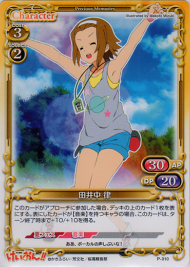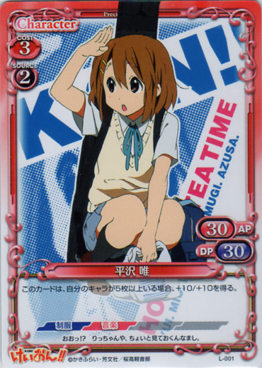 | このカードがアプローチに参加した場合、デッキの上のカード1枚を表にする。表にしたカードが【音楽】を持つキャラの場合、このカードは、ターン終了時まで+10/+10を得る。 | ||
