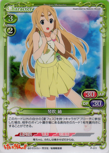 | このカード以外の自分の【夏フェス】を持つキャラがアプローチに参加した場合、相手のポイント置き場にある表向きのカード1枚を裏向きにすることができる。 | ||