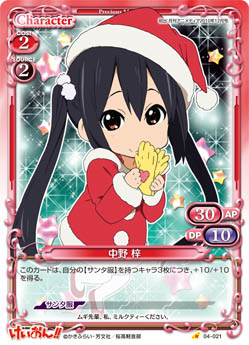 | このカードは、自分の【サンタ服】を持つキャラ3枚につき、+10/+10を得る。 | ||