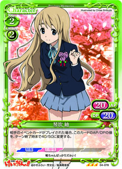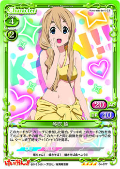 | 相手のイベントカードがプレイされた場合、このカードのAP/DPの値を、ターン終了時まで40/50に変更する。 | ||