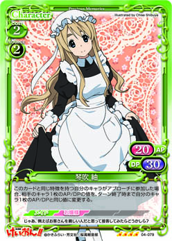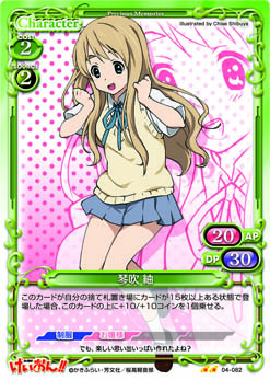 | このカードと同じ特徴を持つ自分のキャラがアプローチに参加した場合、相手のキャラ1枚のAP/DPの値を、ターン終了時まで自分のキャラ1枚のAP/DPと同じ値に変更する。 | ||