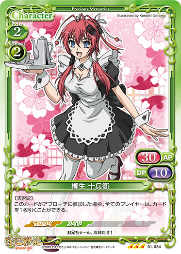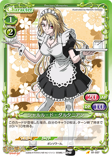 | このカードが登場した場合、自分のキャラ2枚は、ターン終了時まで±0/+10を得る。 | ||