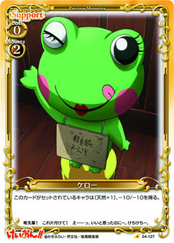 | [アプローチ/自分]:自分のキャラ2枚を休息状態にする。その場合、自分のポイント置き場にあるカード2枚を表向きにすることができる。 | ||