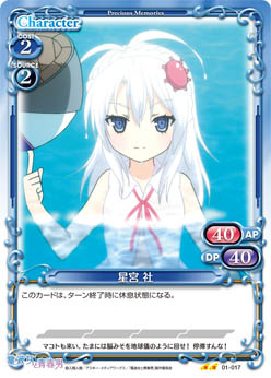 | 〔コンビ〕このカードがアプローチに参加した場合、【水着】を持たないキャラ2枚は、ターン終了時まで-10/-10を得る。 | ||