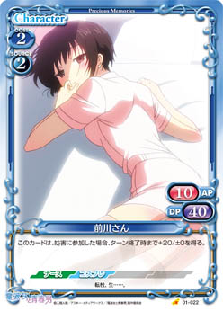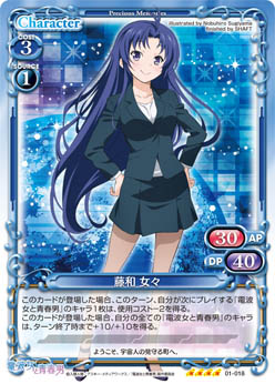 | このカードが登場した場合、自分の捨て札置き場にある『電波女と青春男』のキャラ1枚を手札に戻すことができる。 | ||