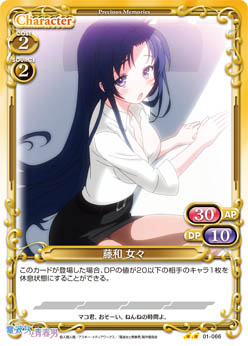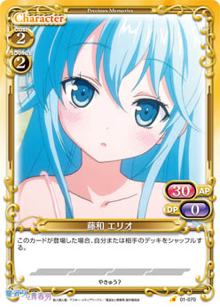 | このカードが登場した場合、DPの値が20以下の相手のキャラ1枚を休息状態にすることができる。 | ||