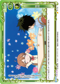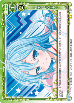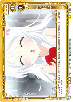 | [メイン/自分]:ターン終了時に自分の捨て札置き場にあるキャラ1枚を手札に戻す。 | ||