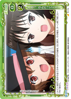 | [メイン/自分]:自分の「藤和 女々」1枚を休息状態にする。その場合、相手のキャラ1枚を休息状態にする。 | ||