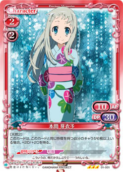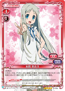 | 〔天然2〕このカードは、アプローチに参加した場合、自分の【超平和バスターズ】を持つキャラ1枚につき、ターン終了時まで+10/±0を得る。 | ||