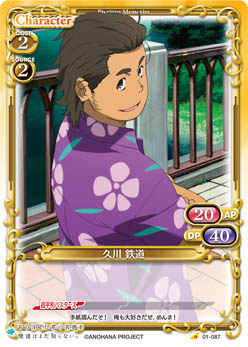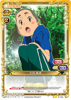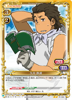 | このカードが登場した場合、ターン終了時に自分の【超平和バスターズ】を持つキャラ1枚を活動状態にする。 | ||