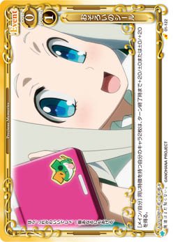 | [メイン/両方]:自分のキャラ1枚のDPの値を、ターン終了時まで40に変更する。自分の「本間 芽衣子」がいる場合、ターン終了時にカードを1枚引く。 | ||