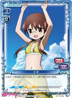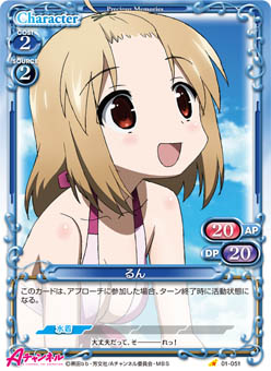| このカードがアプローチまたは妨害に参加した場合、このカードのAP/DPの値を、元に戻す。イベントカードがプレイされた場合、このカードのAP/DPの値を、元に戻す。 | ||