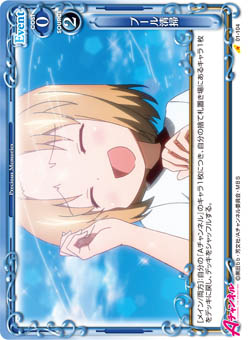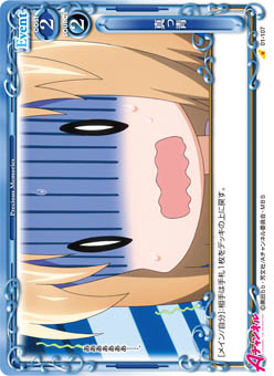 | [メイン/自分]:デッキの中を全て見て、その中にある【水着】を持つ『Aチャンネル』のキャラ1枚を抜き出し、表にしてから手札に加える。その後、デッキをシャッフルする。 | ||