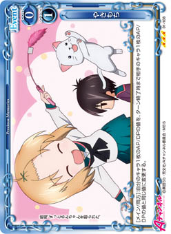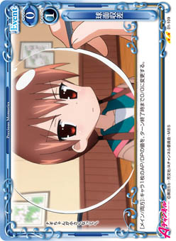 | [メイン/両方]:デッキの上のカード10枚を見て、その中にある『Aチャンネル』のキャラ1枚を抜き出し、表にしてから手札に加える。その後、デッキをシャッフルする。 | ||