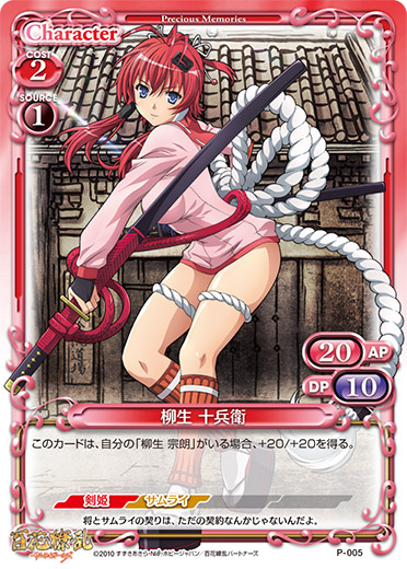 | このカードは、自分の「柳生宗朗」がいる場合、+20/+20を得る。 | ||