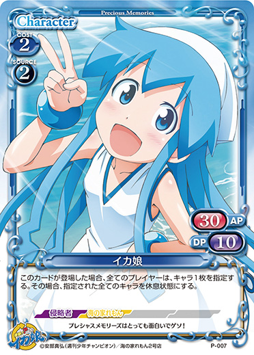 | このカードが登場した場合、すべてのプレイヤーは、キャラ1枚を指定する。その場合、指定された全てのキャラを休息状態にする。 | ||