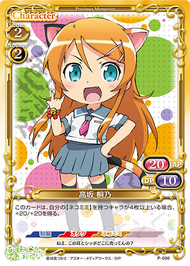 | このカードは、自分の【ネコミミ】を持つキャラが4枚以上いる場合、+20/+20を得る。 | ||