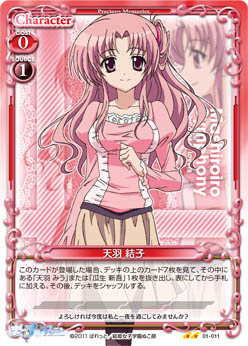 | このカードが登場した場合、デッキの上のカード7枚を見て、その中にある「天羽 みう」または「瓜生 新吾」1枚を抜き出し、表にしてから手札に加える。その後、デッキをシャッフルする。 | ||