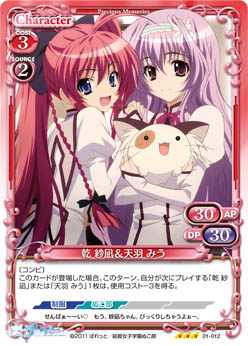 | このカードは、手札にある場合、自分の【ぬこ部】を持つキャラ1枚につき、使用コスト-1を得る。 | ||