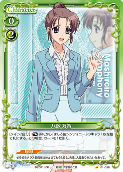 | [メイン/自分]:《休》手札から『ましろ色シンフォニー』のキャラ1枚を捨て札にする。その場合、カードを1枚引く。 | ||