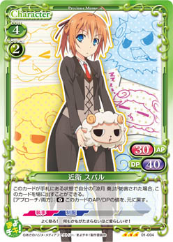| このカードが登場した場合、このターン、自分が次にプレイする「近衛 スバル」1枚は、使用コスト-2を得る。 | ||