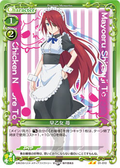 | このカードが登場した場合、自分の捨て札置き場にある全ての『まよチキ!』のキャラをデッキに戻し、デッキをシャッフルする。 | ||