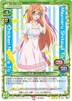 | このカードが登場した場合、自分の捨て札置き場にある『まよチキ!』のキャラ1枚を手札に戻すことができる。 | ||