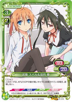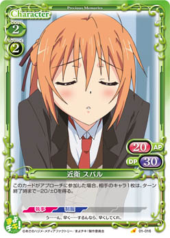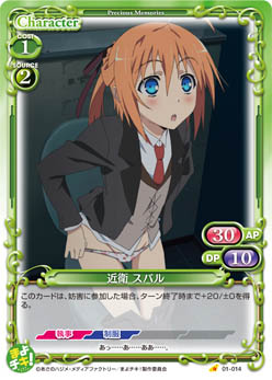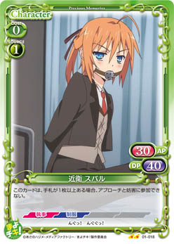 | このカードの名称は、ゲーム中、「近衛 スバル」としても扱う。このカードが妨害に参加している場合、相手はイベントカードをプレイすることができない。 | ||