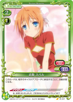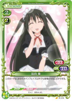 | このカードがアプローチに参加した場合、相手のキャラ1枚は、ターン終了時まで-20/±0を得る。 | ||