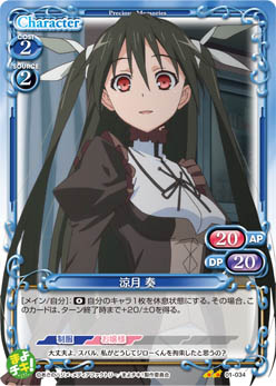 | [メイン/自分]:《0》自分のキャラ1枚を休息状態にする。その場合、このカードは、ターン終了時まで+20/±0を得る。 | ||