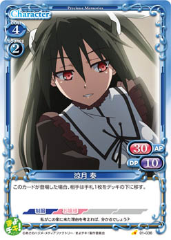 | このカードが登場した場合、使用コストの値が1以下のキャラ1枚を休息状態にする。 | ||
