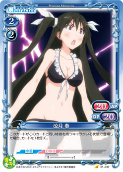 | このカードがこのカードと同じ特徴を持つキャラがいる状態で登場した場合、カードを1枚引く。 | ||