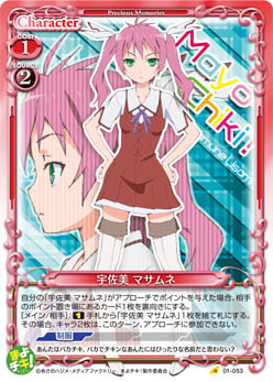 | 自分の「宇佐美 マサムネ」がアプローチでポイントを与えた場合、相手のポイント置き場にあるカード1枚を裏向きにする。[メイン/相手]:《黄1》手札から「宇佐美 マサムネ」1枚を捨て札にする。その場合、キャラ2枚は、このターン、アプローチに参加できない。 | ||