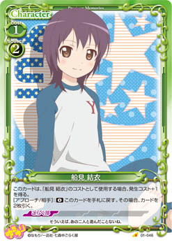 | このカードは、「船見 結衣」のコストとして使用する場合、発生コスト+1を得る。[アプローチ/相手]:《0》このカードを手札に戻す。その場合、カードを2枚引く。 | ||